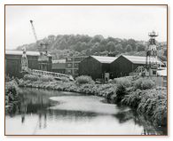 Angry men, able bodied, full grown beer swilling men, who shave twice a day – are now intent on waving their arms and various tools of torture at a group of School Children. Children who, having not been born into an era of " Waterhip Down ", are now making plans to retreat from the bank on the opposite side of the river from the Asbestos and Tin buildings which formed part of the industrious establishment know as "Stothert & Pitt".